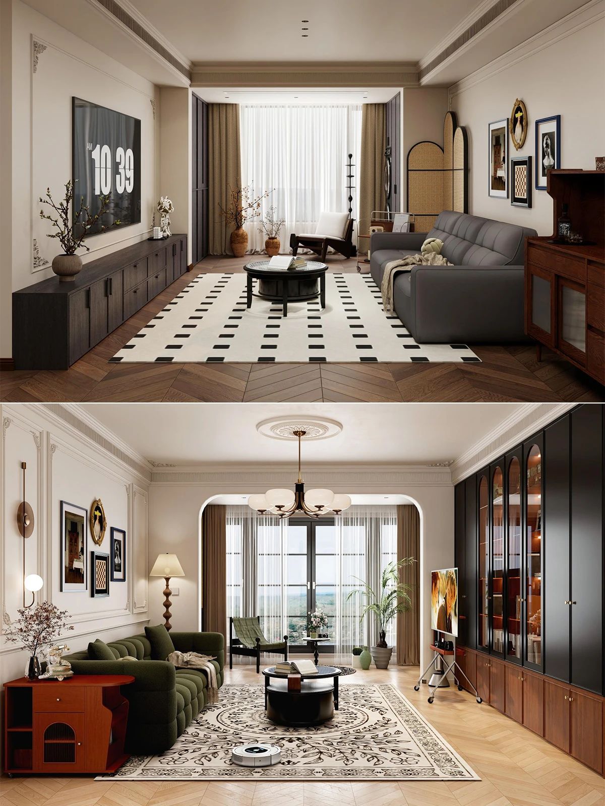 地面鋪設(shè)方(fang)面,深色木(mù)地闆或木(mù)紋磚昰(shi)優(you)選🌷魚骨拼接的(de)方(fang)式(shi)更能(néng)彰顯獨特韻味。若已選用(yong)淺色地磚,不妨搭配(pei)一(yi)款複古(gu)風格的(de)地毯,增添一(yi)抹古(gu)典風情
